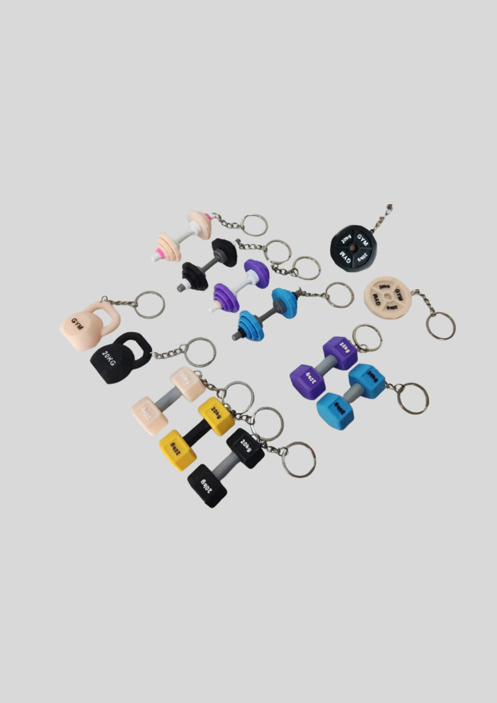 Miniaturas de equipamentos de academia em 3D: anilhas, halteres, kettlebells. Ideal para quem vive o estilo fitness com orgulho!